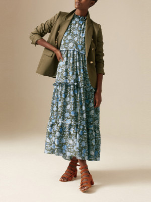OEM service ruffle sleeveless maxi ladies dress custom floral print pocket detail women casual dresses elegant