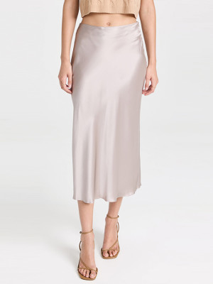 Women clothing ladies high waist solid skirts custom satin side zipper detail midi women skirts casual