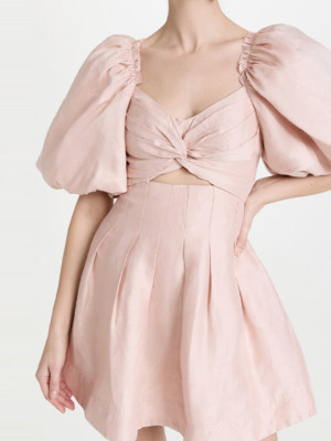 Summer puff sleeve mini dress wholesale custom side pockets twisted detail elegant women dresses