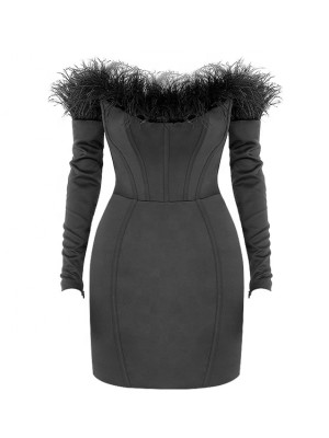 Custom women dresses | elegant black off shoulder dress | party dress | ladies sexy Long Sleeve dress.