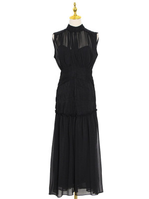 Custom Dresses | Chiffon Stand Up Collar Dresses | Solid Color Patchwork Dresses | Elegant Slim Dresses | Lenth Business Dresses