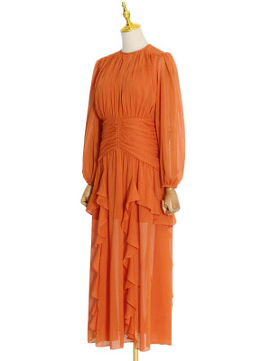 Custom 2023 Fall Dresses | Temperament Elegant Ruffle Long Dresses | New Fashion Round Neck Dresses | Long Sleeve Pleated Dresses