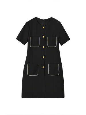 Custom | small fragrant crewneck dresses | short sleeves dresses | contrast white trim dresses