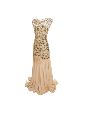 Custom | annual dinner long dresses | vintage sequin beaded dresses | patchwork mesh ruffle long party dresses