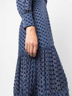 Custom | dot chiffon dresses | women's V-neck dress | Long sleeves pleated utility dress
