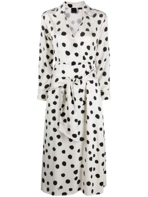 Custom | dot chiffon dresses | women's V-neck dress | Long sleeves pleated utility dress