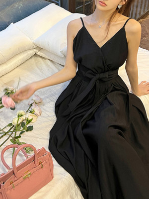 Custom summer dress | French elegant dress | backless lace-up dress | women's V-neck long dress