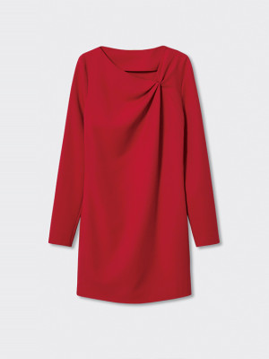 Custom elegant dress | red long sleeve dress | slash neckline dress