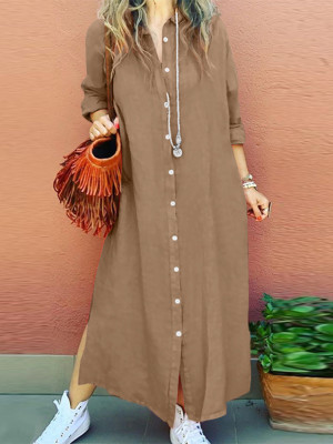 Custom solid color dress | loose dress | long sleeve lapel dress | simple versatile dress