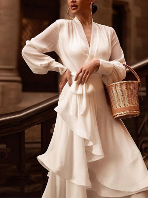 Custom new dress | women's dress | ruffled dress | solid color long dress