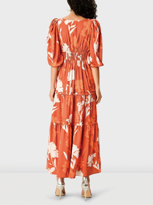 Custom dress | print split neck maxi dress | 2-tier skirt maxi dress