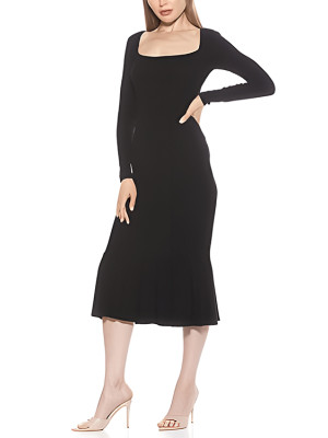 Custom women's sexy dresses | long sleeve ribbed dresses | knitted square neck long dresses