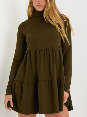 Custom casual dresses | fall olive green dresses | high neck babydoll dresses