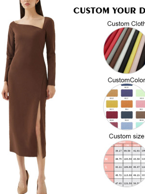 OEM dresses | Brown dress | Cotton dress | Long-sleeved dresses | Split dress | Minimalist dresses