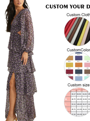 OEM dress | Deep v-neck dress | Floral dress | Purple dress | Backless dresses | Maxi dresses