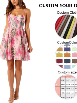OEM dress | Short dress | High waisted dress | Floral print dress | Pink dress | Vintage dresses