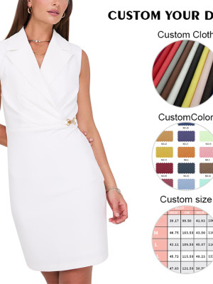 OEM dresses | Suit dress | White dresses | Elegant dresses | V-neck dresses | Sleeveless dress