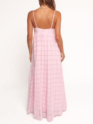 Clothing factory | Pink strap maxi dress | High-waisted A-line dress | Beach vacation dress | Cotton