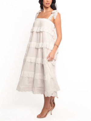 White lace mid-length dress | Cute summer dresses | Bohemian ruffle dress | Dresses manufacturer